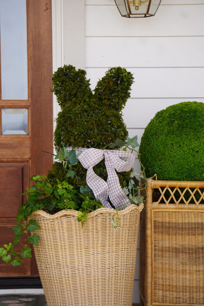 Step 4: Style with Ivy. To complete the look add your bunny in a pot or basket and plant an ivy at the bottom. It makes it feel like a whole arrangement.
